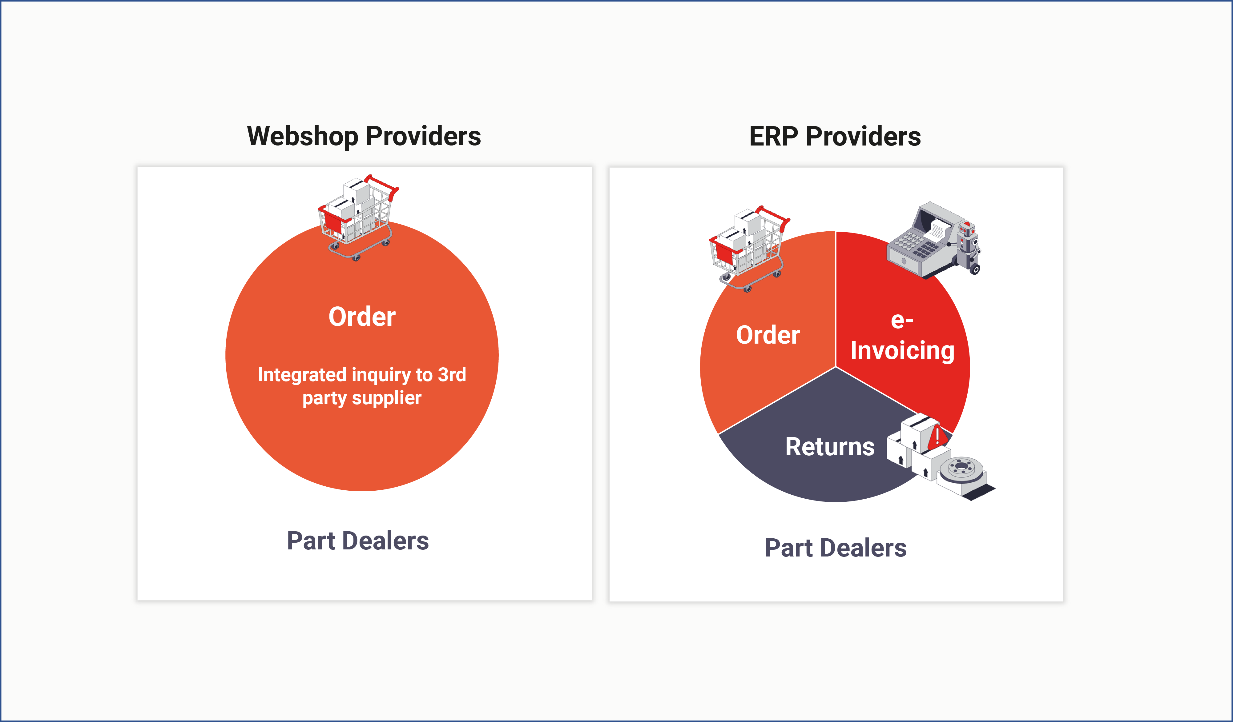 - ERPs will support a wider range of functionalities : Order, e-Invoicing and Returns. This means that beside of the well-known functions from TecCom Order like availability check, express and stock orders, dispatch advice, order tracking, backorder reports etc., customers can in future also receive digitally their invoices and have them automatically pre-checked against goods entries (TecCom eInvoicing). Thanks to the TecCom Returns module, also warranty and returns claims can be automatically sent from the ERP system to the suppliers giving more control and transparency over the process to the distributors.